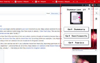With Summarize it, users can enhance their browsing experience by quickly understanding the essence of lengthy articles or web pages. Additionally, the sentiment analysis feature enables users to grasp the emotional tone of the content, while the listing of main topics assists in identifying the core subjects discussed on the website.